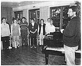 rechts: Gesangssolistinnen und Klavierprofessor mit