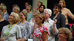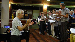 bei der Probe mit dem großen Chor.