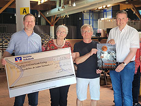 symbolisch ein Scheck von der Volksbank überreicht: (v.l.)
